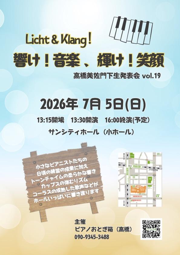 2026年の発表会は、7月5日(日)サンシティホール(小ホール)にて開催します。